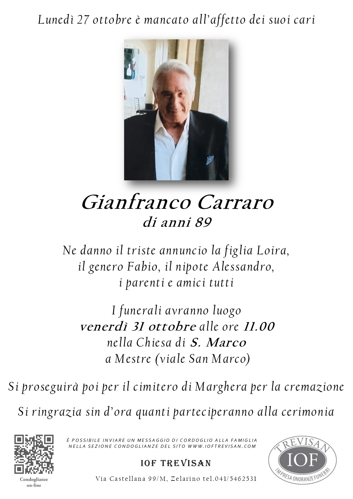 Lascia un messaggio di cordoglio