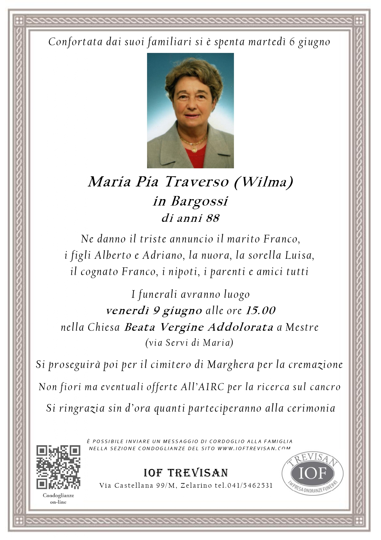Lascia un messaggio di cordoglio